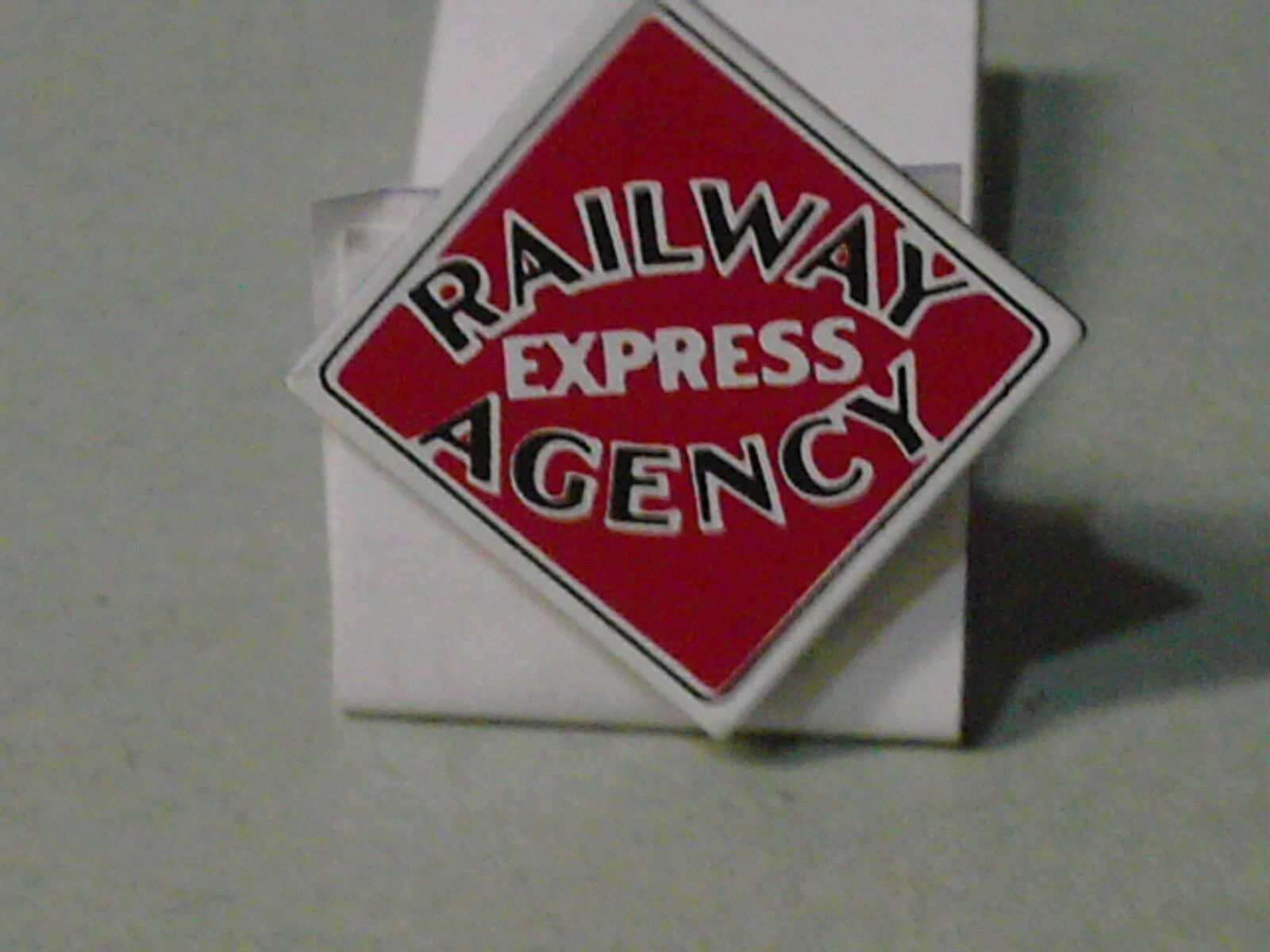 Railway Express Agency Hat / Lapel Pin Red Black White 1 1/16" Across Points