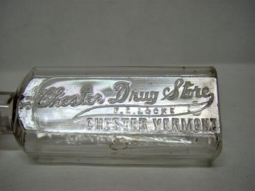 Antique CHESTER DRUG STORE CHESTER, VERMONT F.C. LOCKE Miniature Medicine Bottle