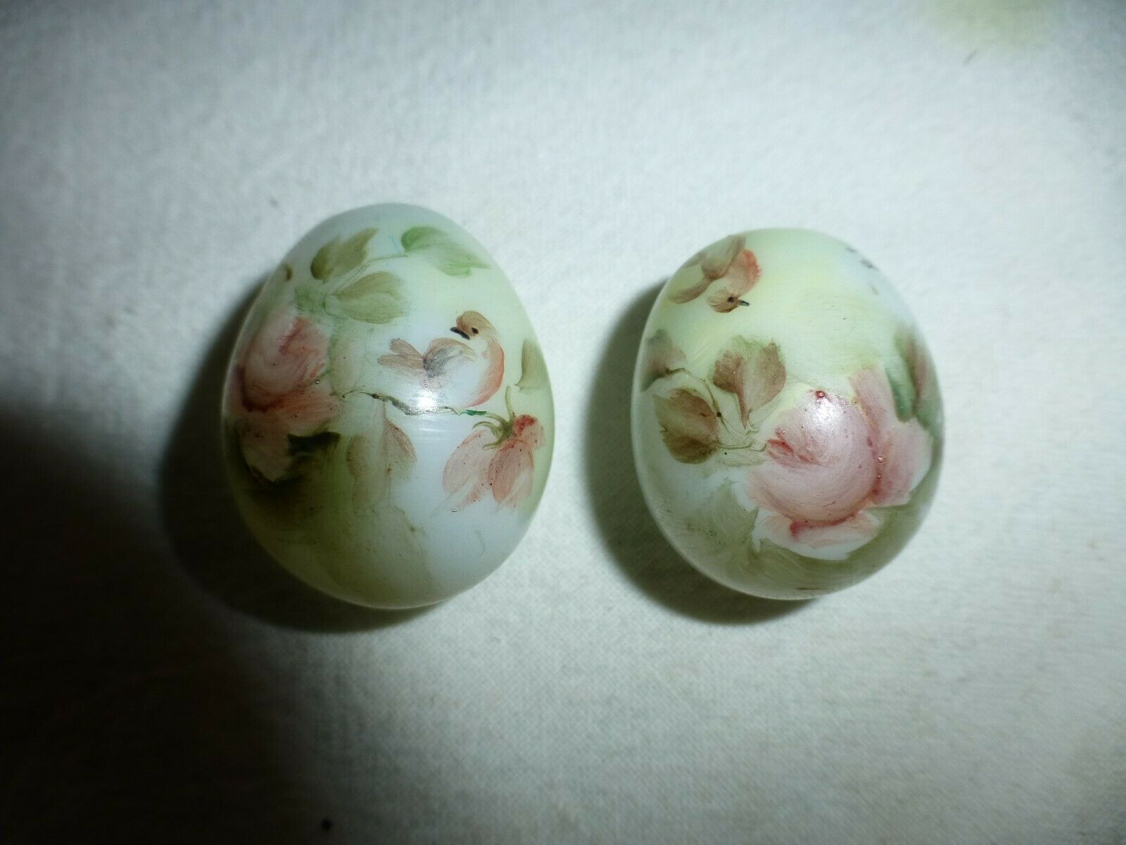 Title (ebay affiliate link): TWO ANTIQUE MILK GLASS EGGS-MINIATURE, HANDPAINTED WITH ROSES, SIGNED