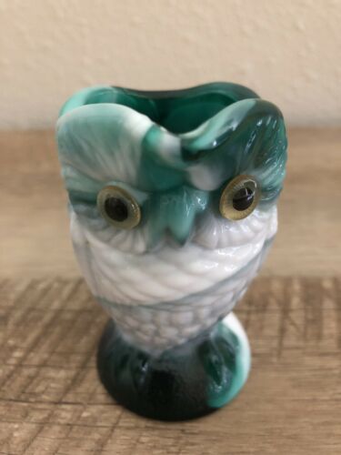 Small Owl Milk Glass? Pitcher with Eyes- Green and White