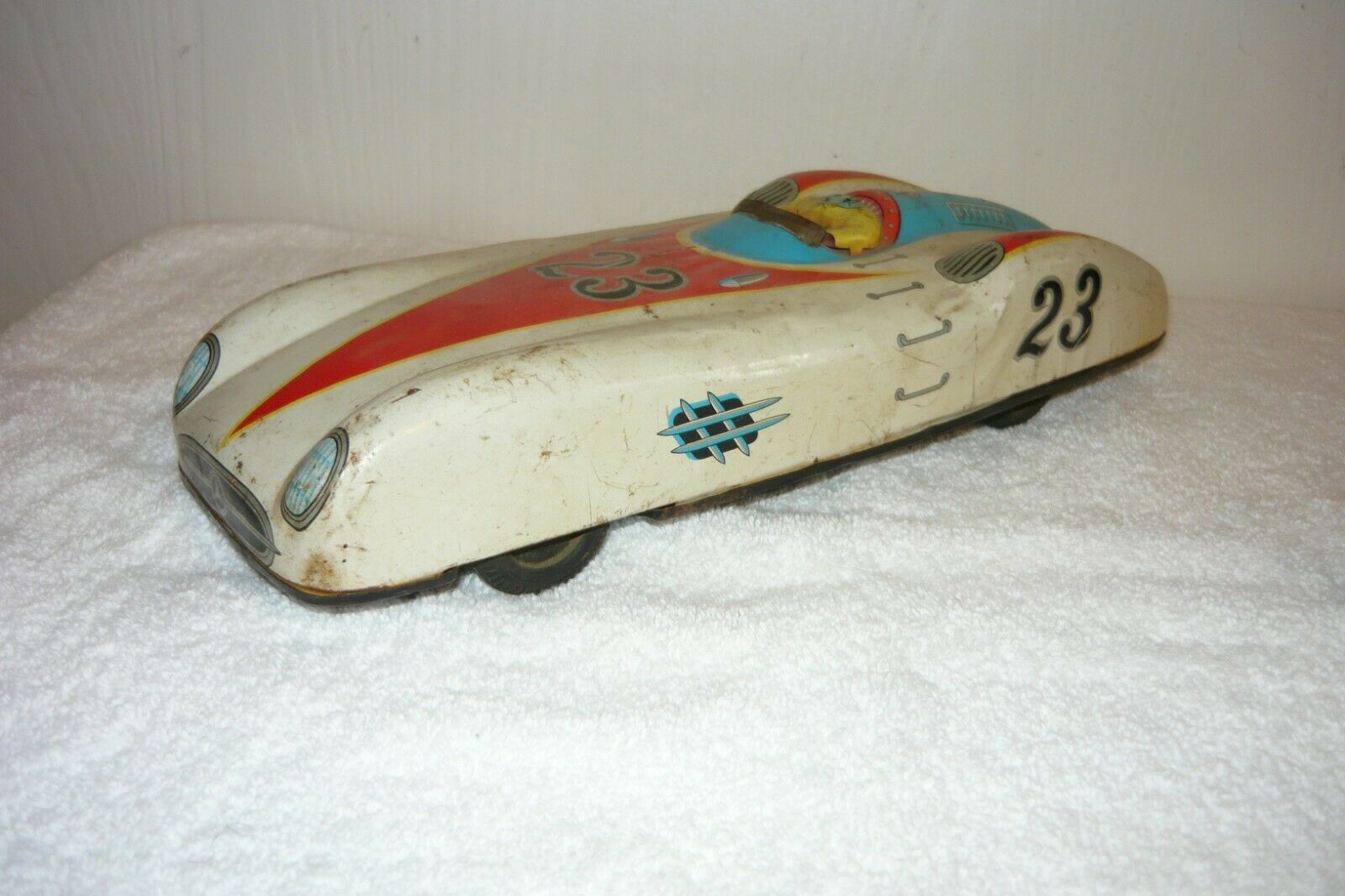 Rare vintage tin toy race car Cragstan Japan Speed King Mercedes No. 23, 11"