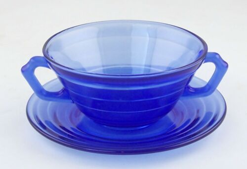 DEPRESSION GLASS * HAZEL ATLAS * CREAM SOUP * MODERNTONE WEDDING BAND * COBALT