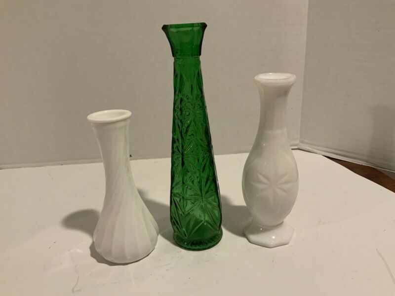 Vintage Vase Lot Stem Milk Glass Green Glass Tapered