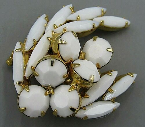 GRANDMA SHOW STOPPER Milk Glass Vintage Jewelry BROOCH PIN Rhinestone Lot K