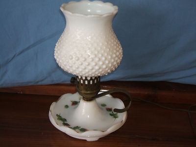 Vintage Milk Glass electric lamp hobnail shade