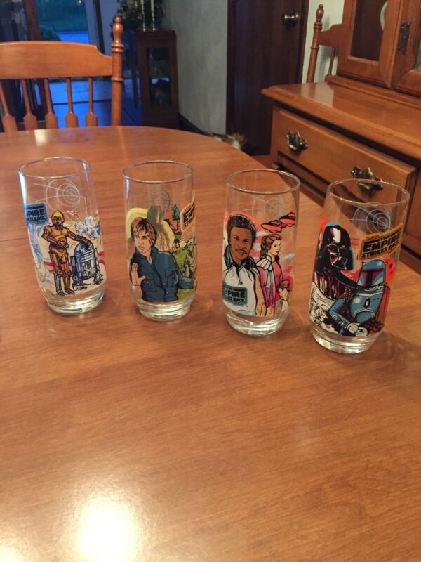 Title (ebay affiliate link): Vintage Set/4 Star Wars 1980 Burger King Coca Cola Glasses Darth/Luke/Lando/R2D2