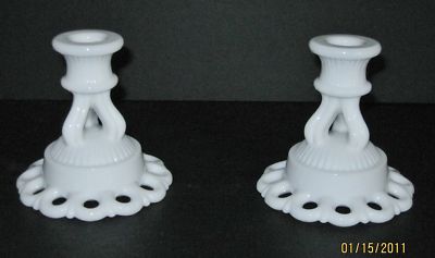 PAIR OF VINTAGE MILK GLASS CANDLESTICKS EUC