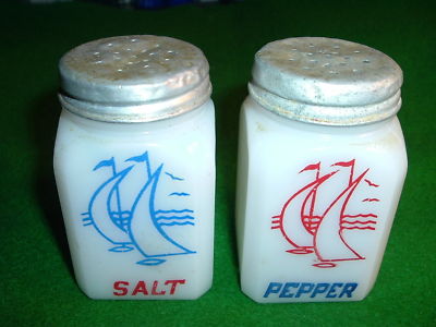 Vintage Milk Glass Sailboats Salt and Pepper Shakers