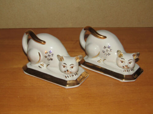 lot 2x pair cat kitten Swarovski Polaris capodimonte italy collezione gold trim