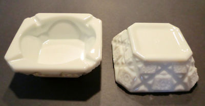 2 Westmoreland Milk Glass Old Quilt 4" Ashtrays