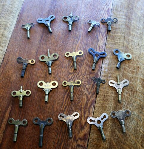 20 ANTIQUE/VINTAGE CLOCK KEYS WITH NAMES