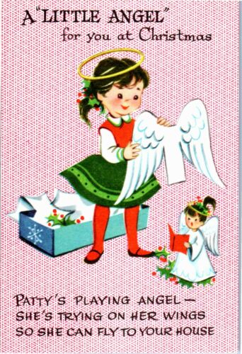 Title (ebay affiliate link): Unused Paper Doll Pretty Angel Girl Lady Kid Paper VTG Christmas Greeting Card