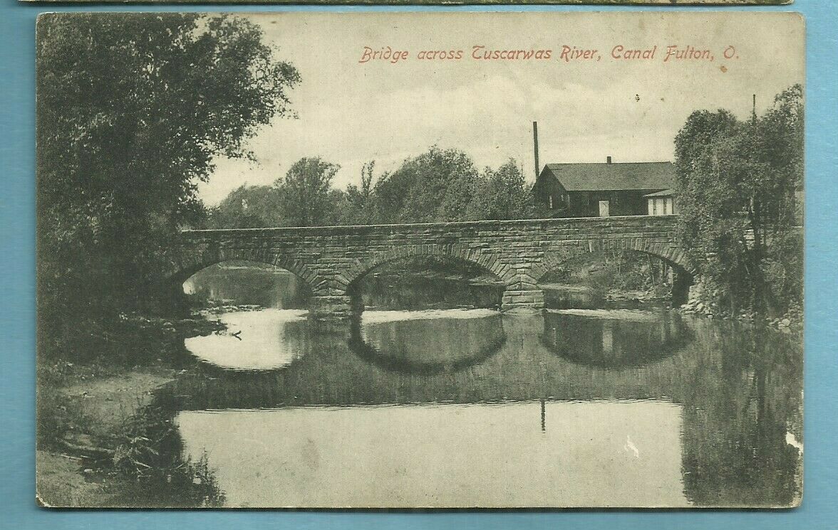 Canal Fulton, Oh/ Bridge across Tuscarawas River/ bldg/ black & white postcard