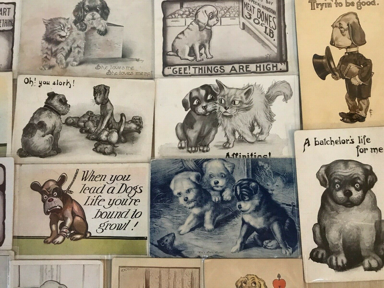 Lot of 15 Vintage Postcards with DOGS puppies Comic postcards-Some Signed-c327