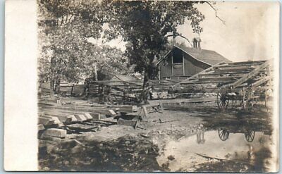 Vintage RPPC Real Photo Postcard FARM SCENE Barn / House Construction c1910s