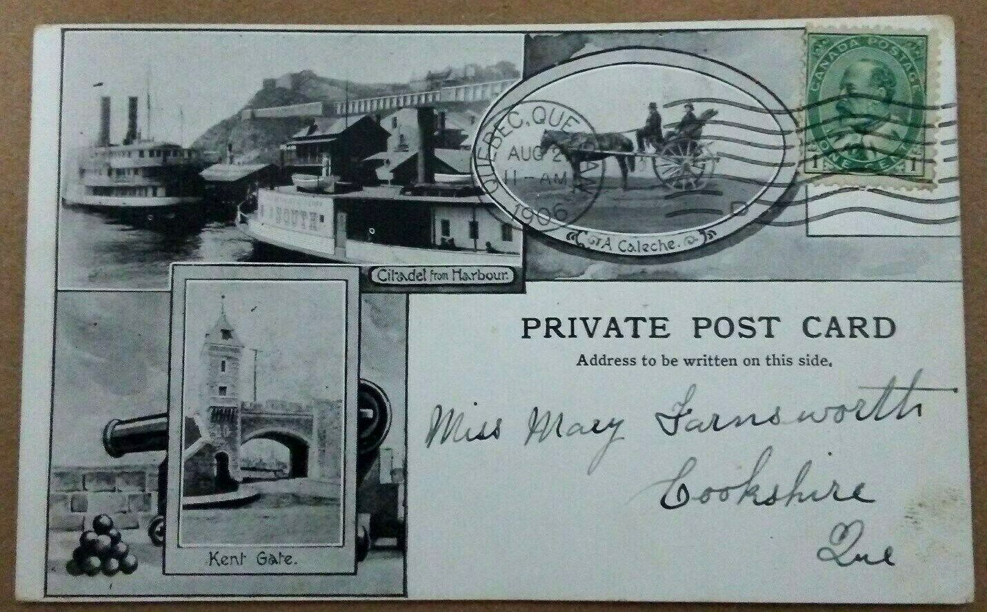 Postcard Quebec VIEW Kent Gate- Citadel from Harbour- Caleche