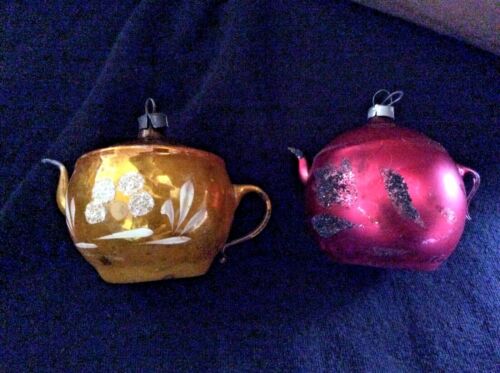 Vintage Glass Teapot Lot of 2 Christmas Ornaments