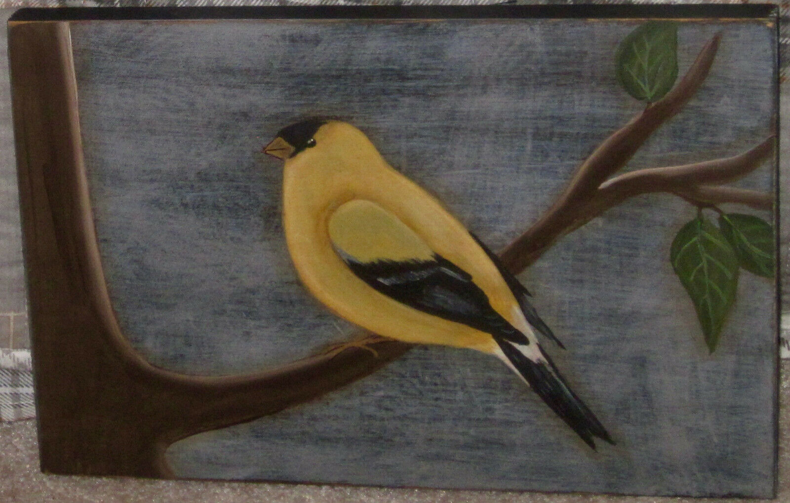 Title (ebay affiliate link): *~*PRIMITIVE*~* HP FOLK ART PRIM YELLOW FINCH *~* BOARD
