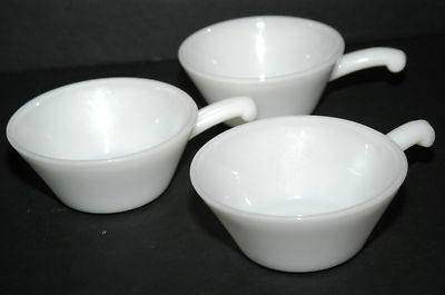 3 Anchor Hocking Fire King Milkglass Handled Soup Bowls