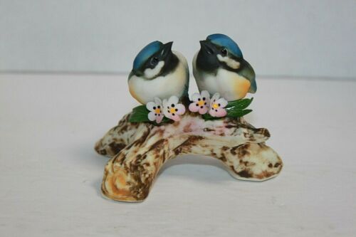 Cute Vintage Capodimonte Pair Baby Blue Birds On Branch Figurine