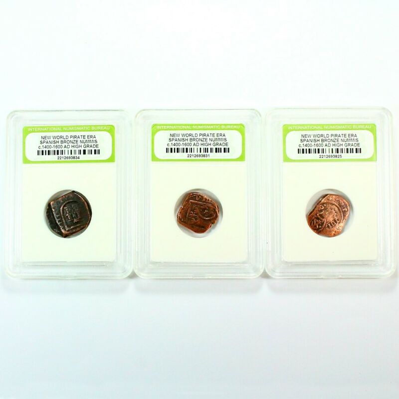 Title (ebay affiliate link): 3 Pirate Era - 1600''s Early America Spanish Bronze Cobs Exact Lot Shown 7993