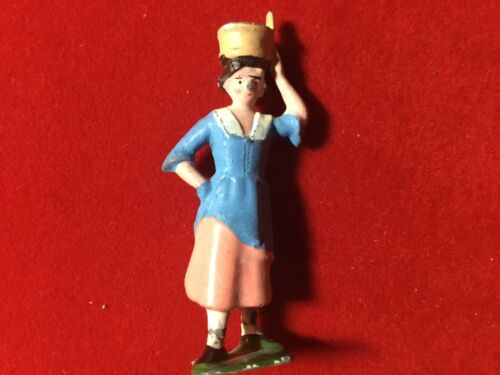 Old Vintage Collectable Lead Figure Woman Carrying Supplies On Head