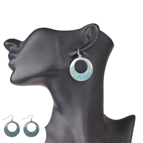Title (ebay affiliate link): Women Bohemian Boho Style Antique Alloy Flower Carved Round Ring Dangle Earring