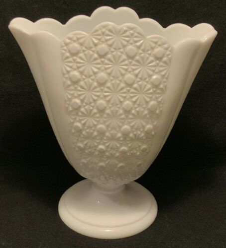 Title (ebay affiliate link): Vintage c.1950s Large FENTON Milk Glass DAISY & BUTTON Fan Vase - EXC!