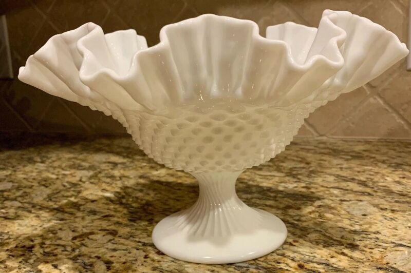 Title (ebay affiliate link): VINTAGE FENTON MILK GLASS HOBNAIL 10" FOOTED COMPORT BOWL #3731 (6/1959-79)