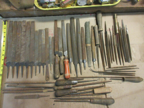 Title (ebay affiliate link): 54 metal & wood working files arcade heller, black diamond, old blacksmith tools
