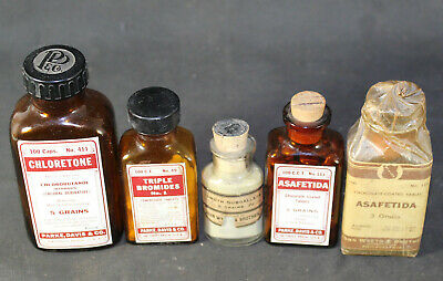 Title (ebay affiliate link): 5 Antique BIM Glass Apothecary Drugstore Bottles: Wyeth Parke Davis Asafetida &c
