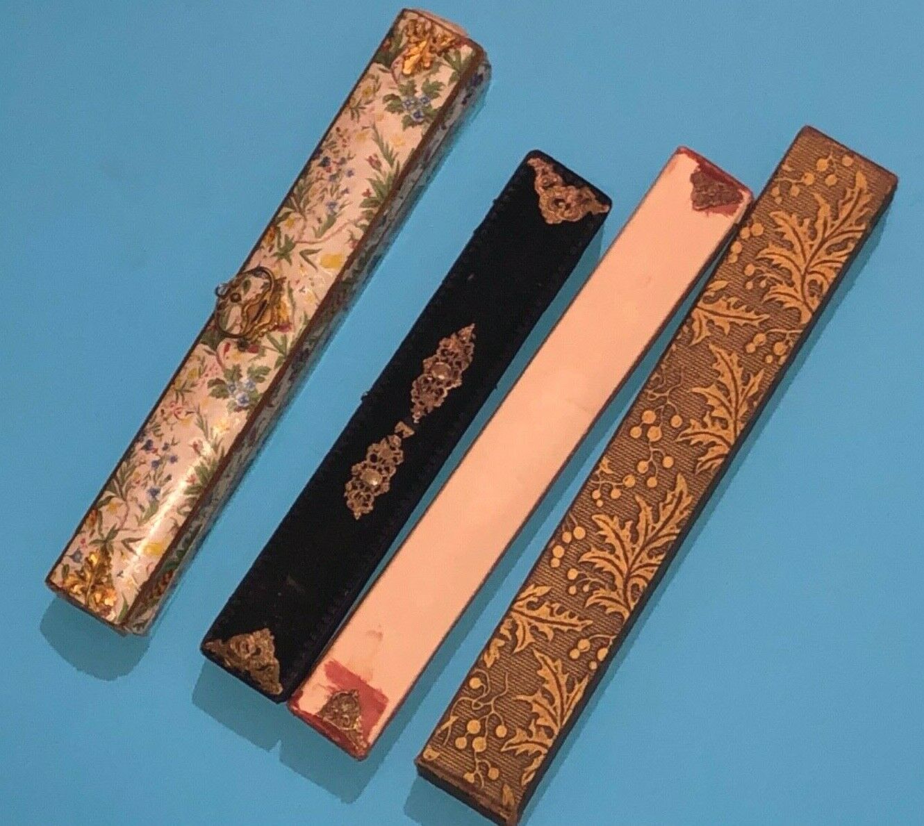 4 FINE VICTORIAN HAND MADE FAN CASE BOX DIFFERENT MATERIALS