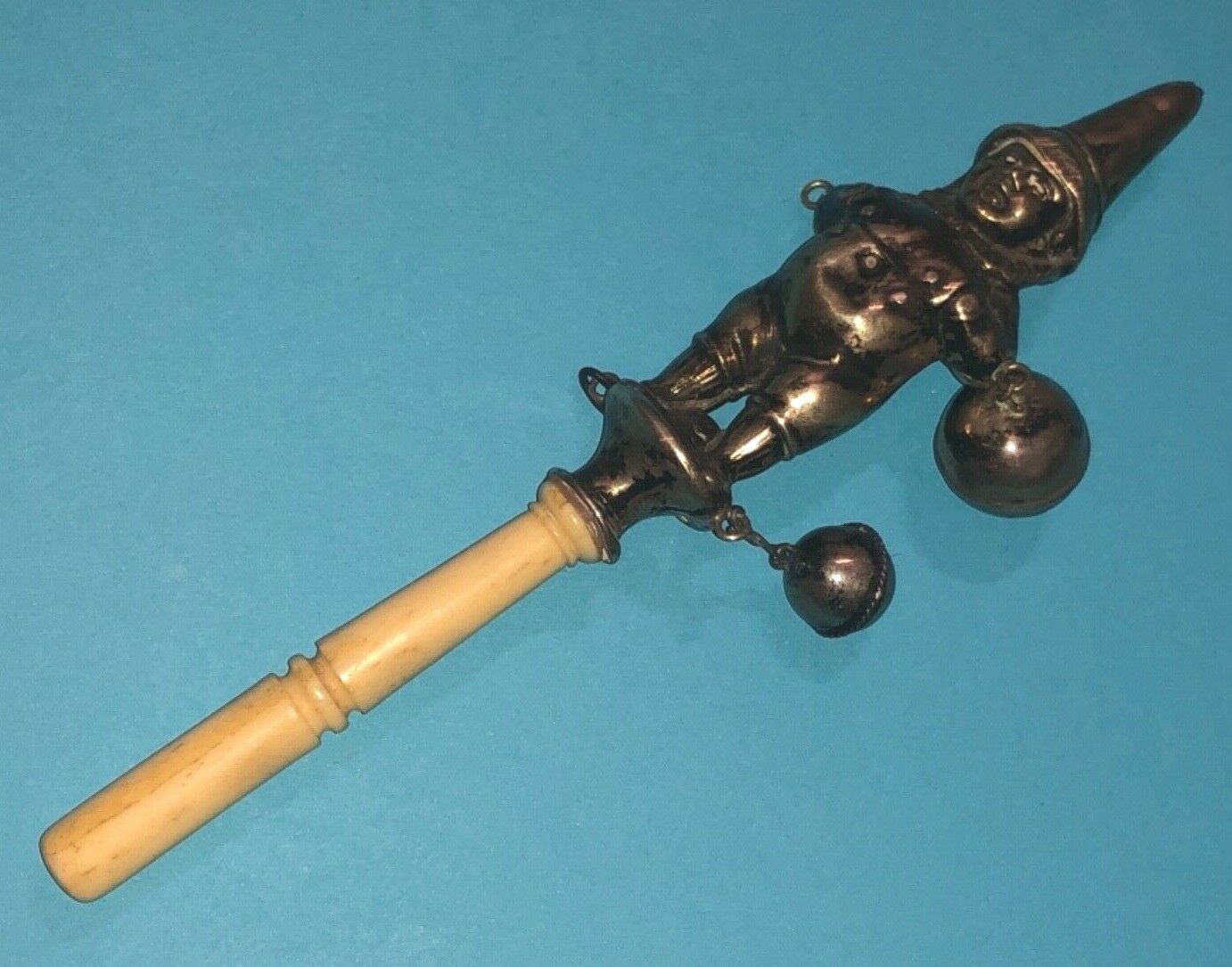 Title (ebay affiliate link): RARE VICTORIAN SOLID SILVER CARVED NOVELTY FIGURAL DWARF BABY RATTLE