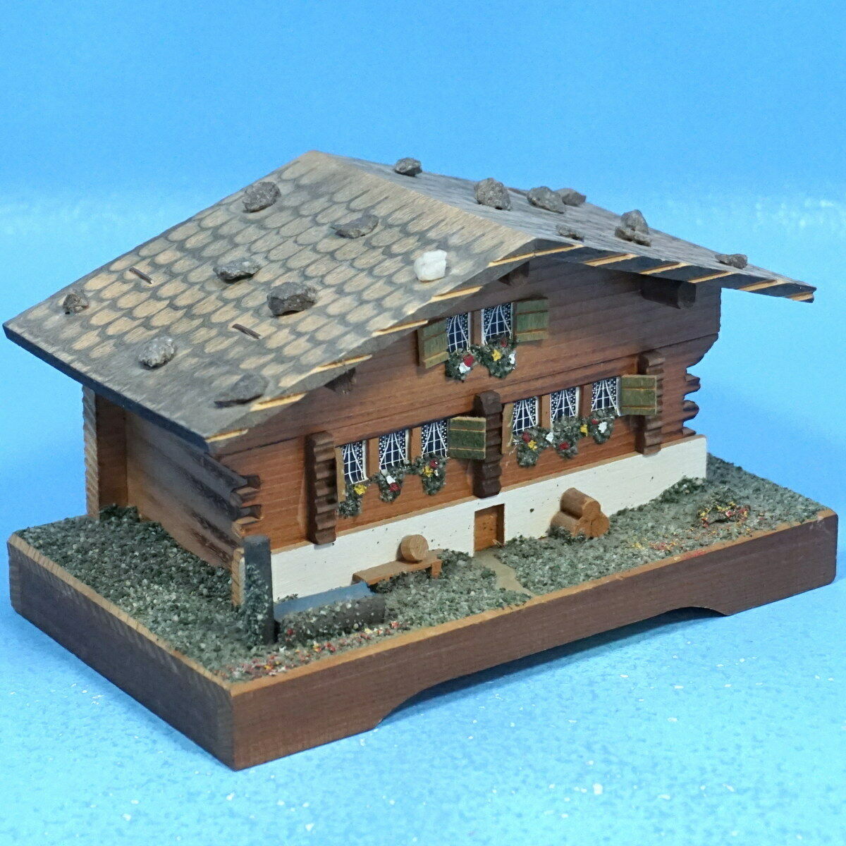 Title (ebay affiliate link): 7"w Swiss Wood Carving TRINKET JEWELRY BOX Mountain Chalet Farm House Brienz