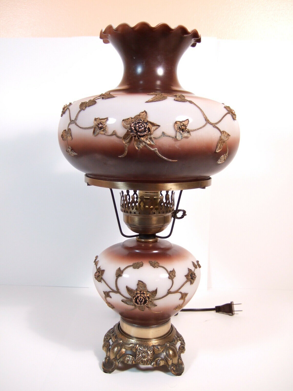 Title (ebay affiliate link): Vintage L & L 8480 Electric Brown and White Table Lamp With raised Gold Roses