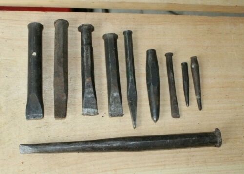Lot of 10 Vintage Cold Steel Blacksmith Stone Mason Chisels & Punches