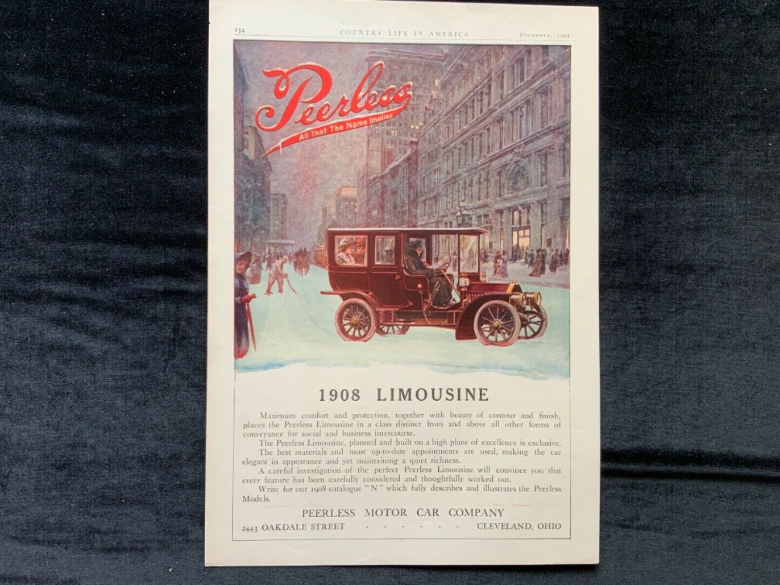 E Peerless 1908 Limousine Ad 13 3/4 x 9 1/2