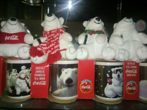 Coca cola collectibles figurines 6 coffee cups with bear