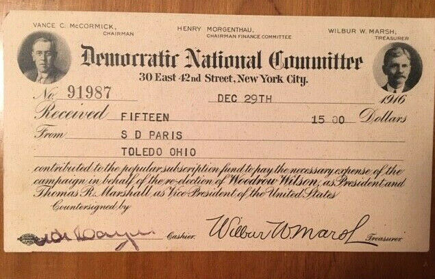 Title (ebay affiliate link): 1916 PRESIDENT WOODROW WILSON DEMOCRATIC NATIONAL COMMITTEE PLEDGE CARD