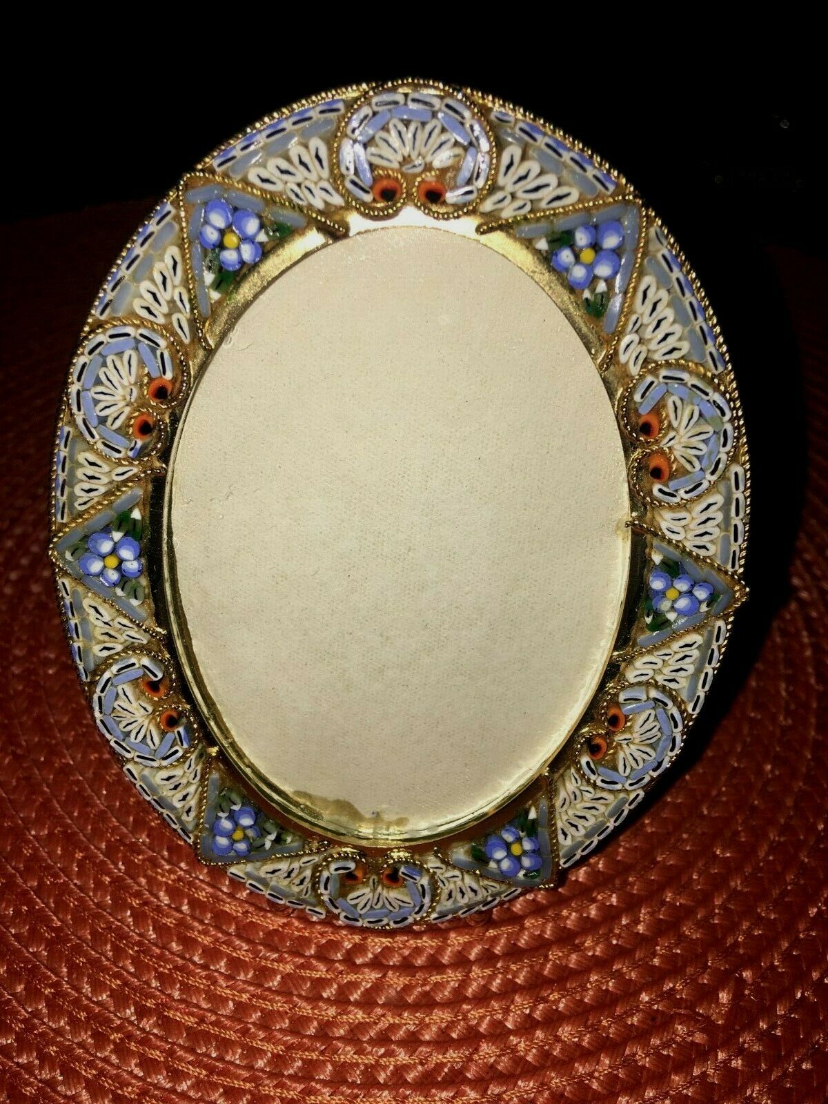 Vintage Italian Floral Micro Mosaic Picture Frame Easel Back