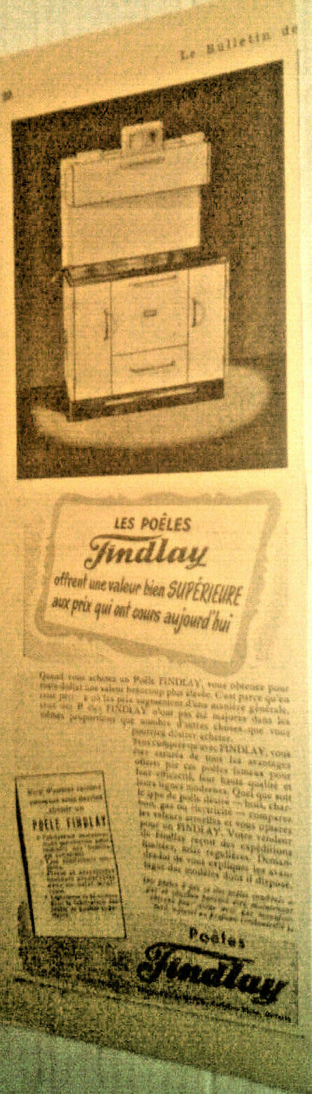 1947 FINDLAY STOVES ORIGINAL AD IN FRENCH