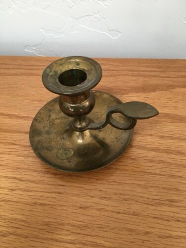 Title (ebay affiliate link): Brass Vintage Chamber Candlestick with Handle and Dish 3 1/2" tall and 4" base