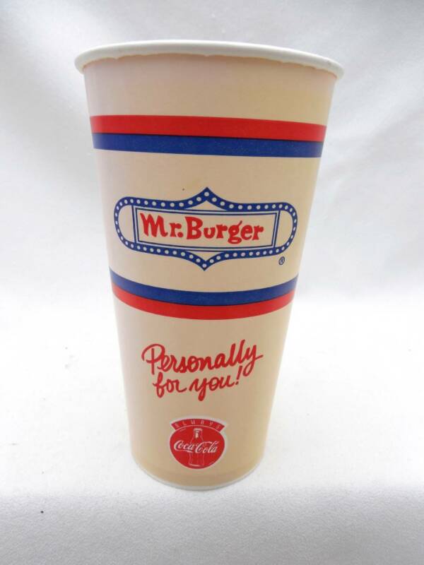 Vintage Waxed Coca-Cola Advertising Cup MR BURGER 7" Coke