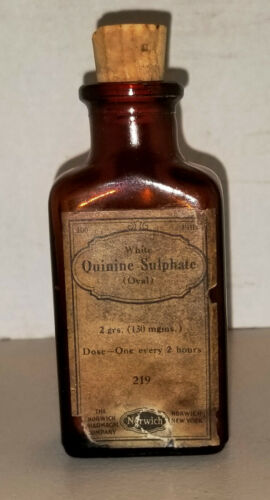 Title (ebay affiliate link): Vintage Antique QUININE SULPHATE MEDICINE BOTTLE Norwich Pharmacy Advertising