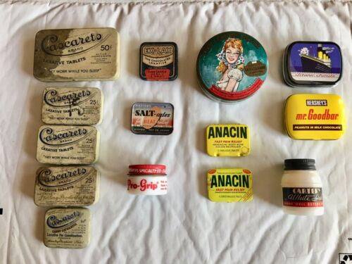 Title (ebay affiliate link): Old Cascarets , Ex-Lax, Salt-ades Tins Plus A Few Other Tins-2 Milk Glass Jars