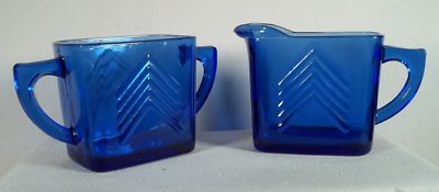 HAZEL ATLAS "CHEVRON" SUGAR BOWL AND CREAMER