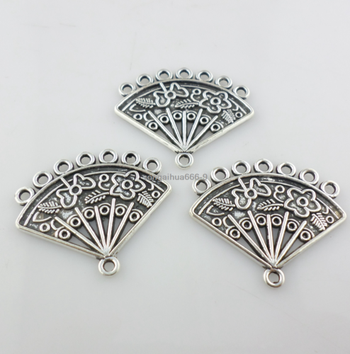 12pcs 1-7 hole Folding fan Antique Silver Charms Jewelry Connectors 28*24mm
