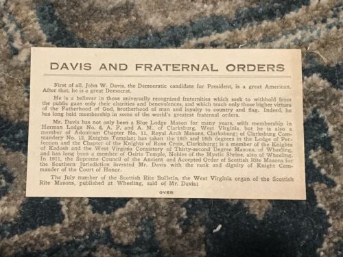 Title (ebay affiliate link): 1924 John W. Davis And Fraternal Orders Presidential Campaign Flier Masons