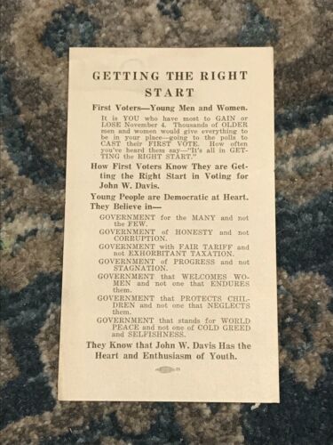 Title (ebay affiliate link): 1924 John W. Davis First Voters Youth Presidential Campaign Flier
