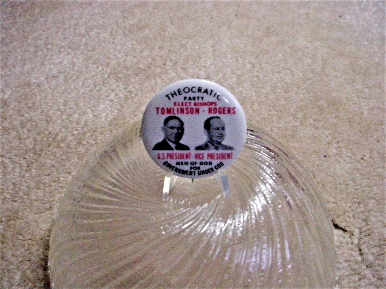Title (ebay affiliate link): 1964 Theocratic Party Tomlinson/Rogers Jugate President Campaign Pinback Button